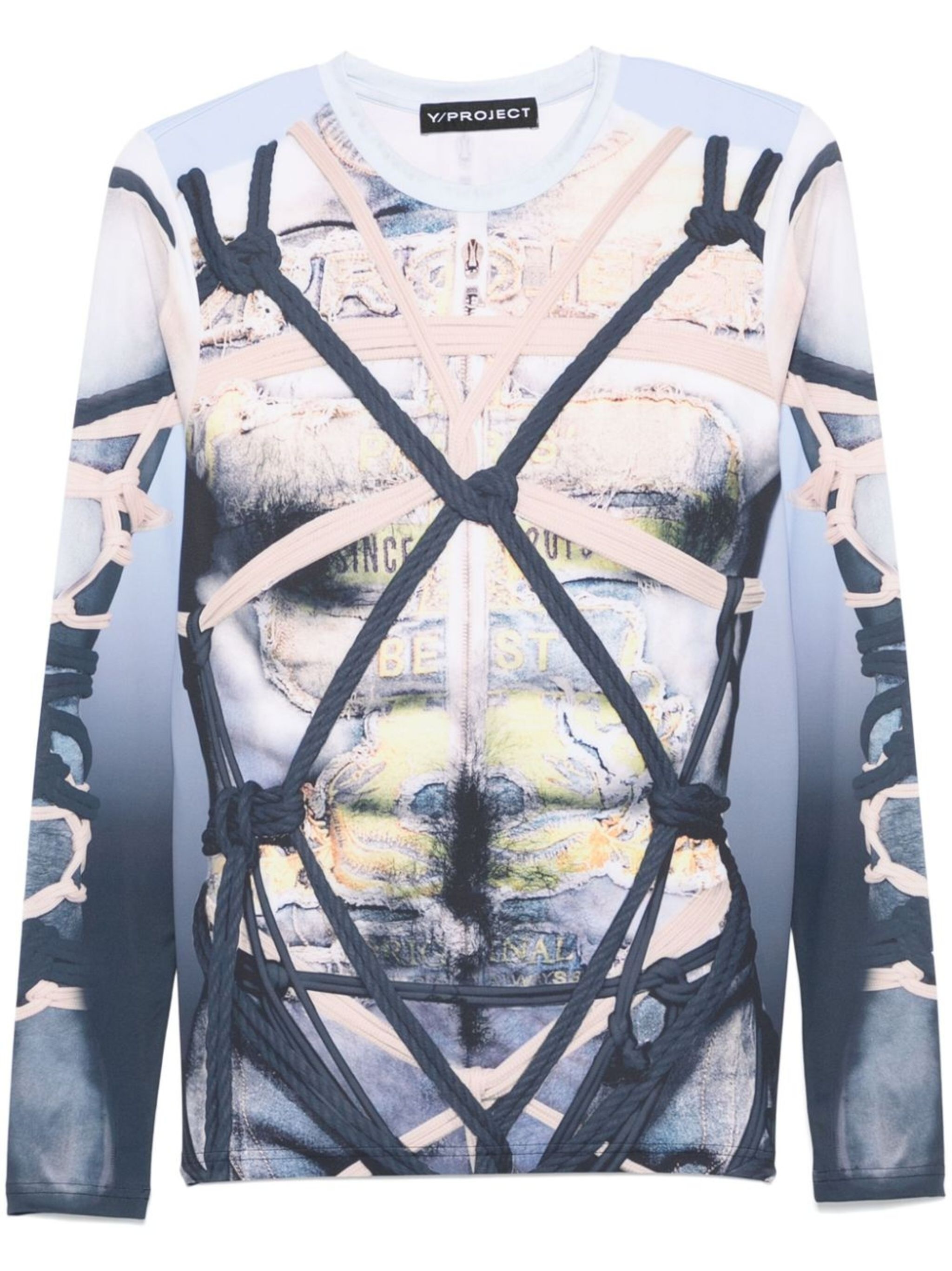 blue/multicolour stretch-jersey all-over graphic print round neck long sleeves straight hem When buying this unisex item, keep in mind that it is graded in standard men's sizing. Size & Fit Model Measurements: Bust: 0cm Height: 0cm Hips: 0cm Waist: 0cm Fabric and Care Designer Style ID: 204TO008 Designer Colour: BLUE BLACK Composition: Polyamide 89%, Elastane 11% Washing instructions: Machine Wash Made in Portugal