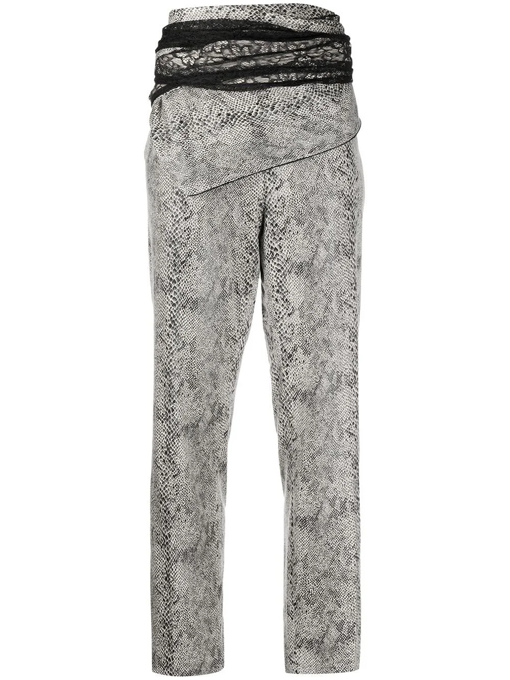 high-waisted python-effect trousers Highlights - Off white/black - Python print - Draped detailing - Tied waist - wraparound style - high waist - straight leg Imported Composition Outer: Polyester 100% Lining: Acetate 100% SIZE & FIT Model measurements Height 5 ft 10 in(1.78 m) Bust/Chest 33.07 in(84 cm) Hips 35.82 in(91 cm) Waist 25.98 in(66 cm) FittingInformation This piece fits true to size. We recommend you get your regular size Designed to be fitted at the waist, loose over the leg Made with a mid-weight non-stretch fabric Washing instructions Dry Clean Only