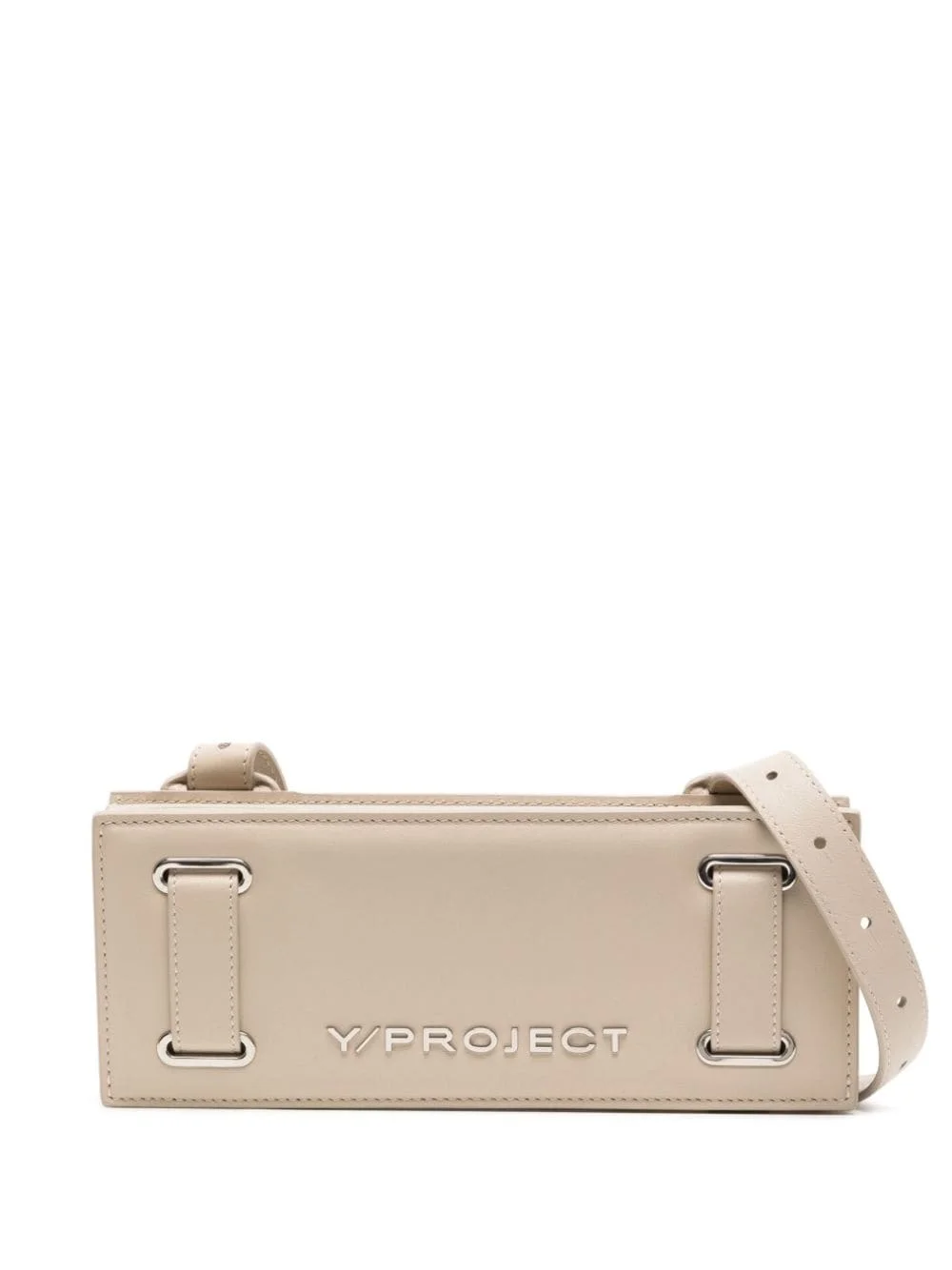logo-plaque accordion bag Designed by Y/Project, this shoulder bag is defined by its simplicity. Constructed from beige leather with a compact accordion design, it is minimally decorated with a logo plaque over the front. Highlights - Light beige - Calf leather - Accordion design - Silver-tone logo plaque - Silver-tone hardware - Top zip fastening - Detachable shoulder strap - Main compartment Made in Italy Composition Body: Calf Leather 100% SIZE & FIT Model measurements Height 5 ft 9 in(1.76 m) Bust/Chest 31.1 in(79 cm) Hips 35.03 in(89 cm) Waist 24.4 in(62 cm) Measurement DEPTH 1.96 in(5 cm) HEIGHT 3.93 in(10 cm) STRAP 21.25 in(54 cm) WIDTH 9.84 in(25 cm)