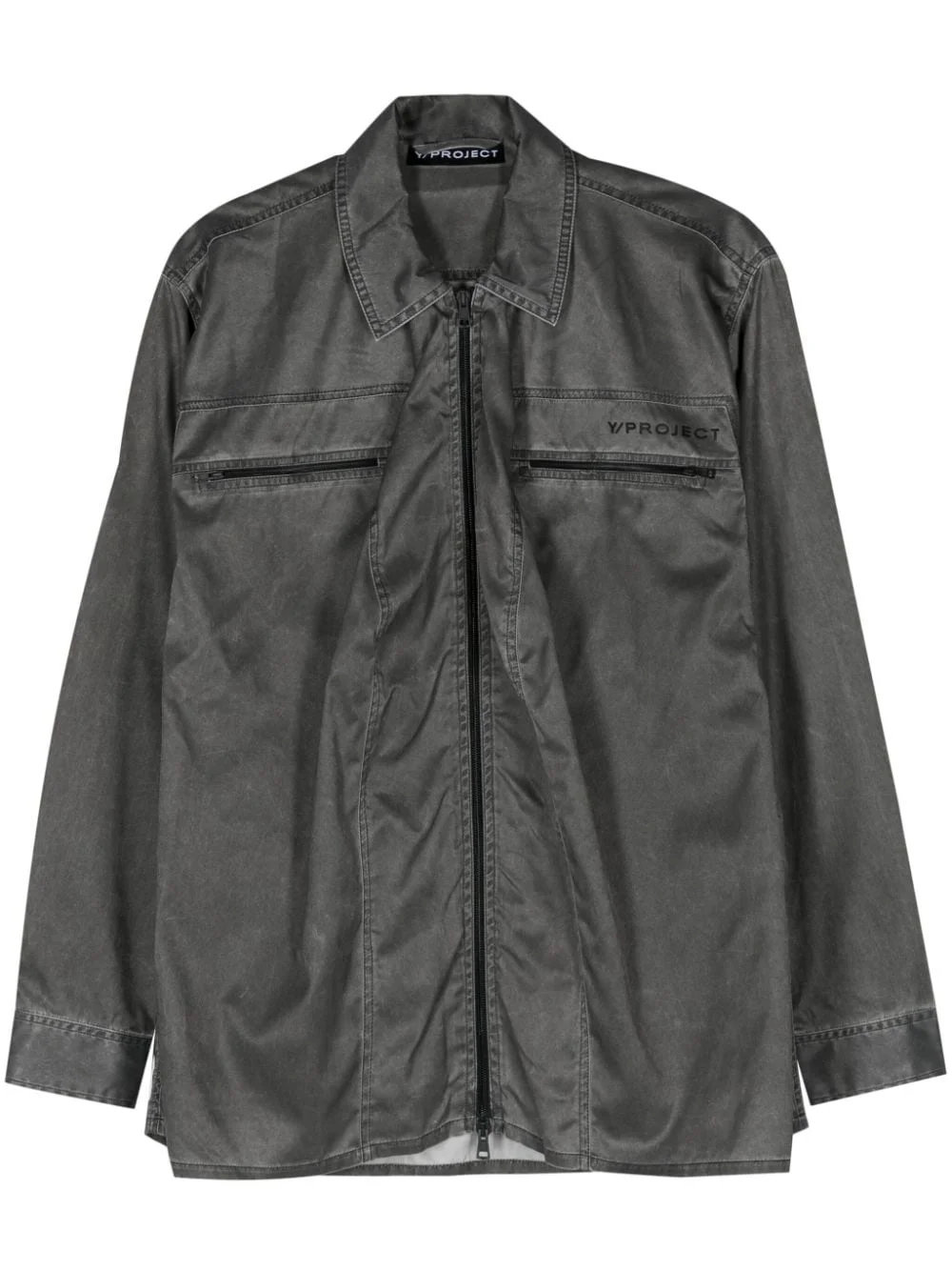 logo-print zip-up overshirt Highlights - Washed black - Twill weave - Logo print at the chest - Classic collar - Front two-way zip fastening - Long sleeves - Buttoned cuffs - Straight hem - Two side slit pockets - When buying this unisex item, keep in mind that it is graded in standard men's sizing. Imported Composition Polyamide 96%, Polyurethane 4% SIZE & FIT Measurement CHEST 49.6 in(126 cm) SLEEVE LENGTH 25.98 in(66 cm) LENGTH 31.88 in(81 cm) WAIST 49.6 in(126 cm) Shoulder Width 20.86 in(53 cm) Washing instructions Machine Wash