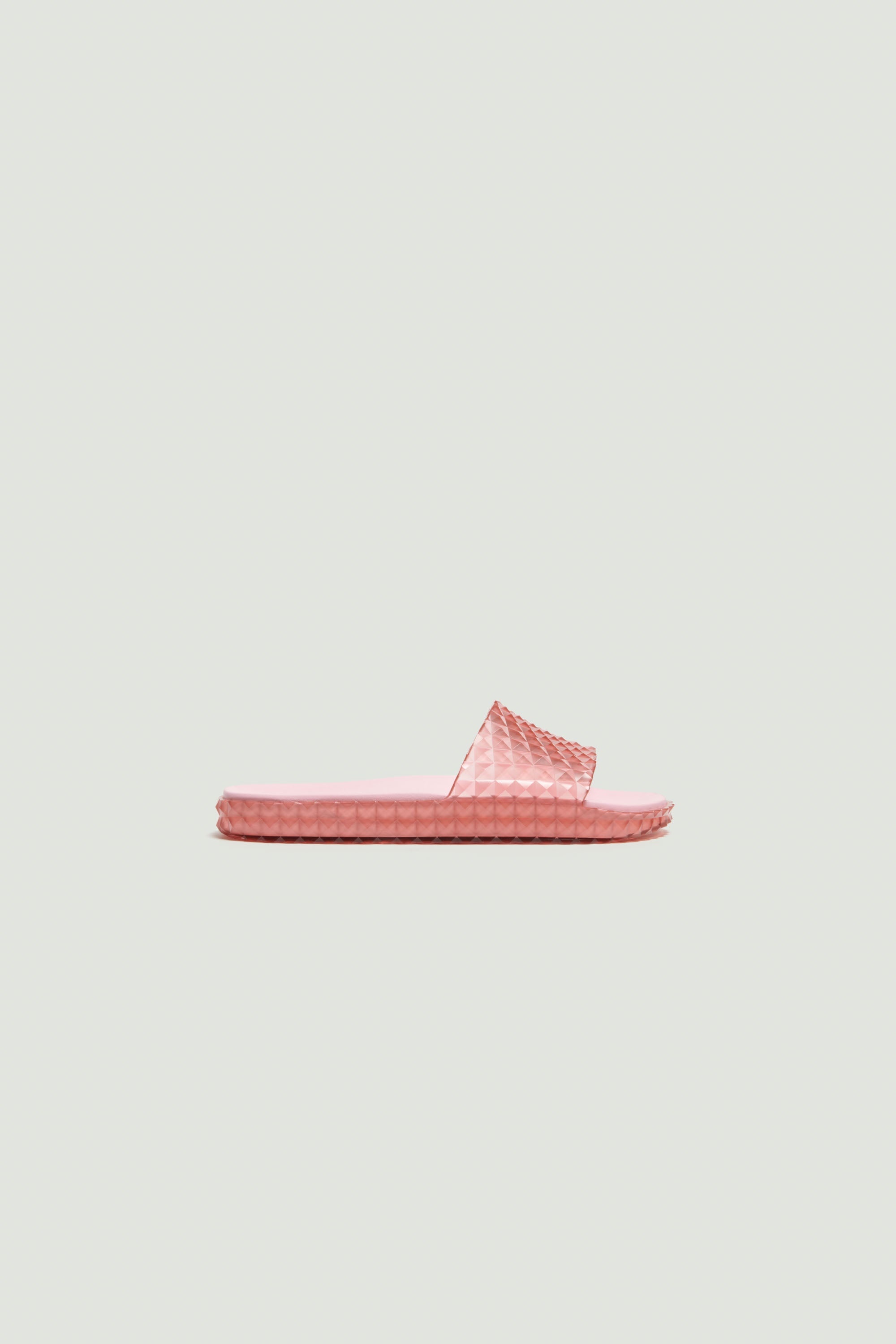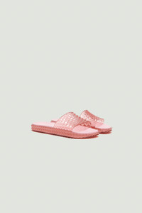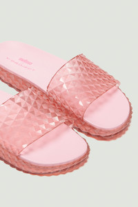 Ornate slide with orchid inspired floral embellishment, designed in collaboration with Melissa shoes.