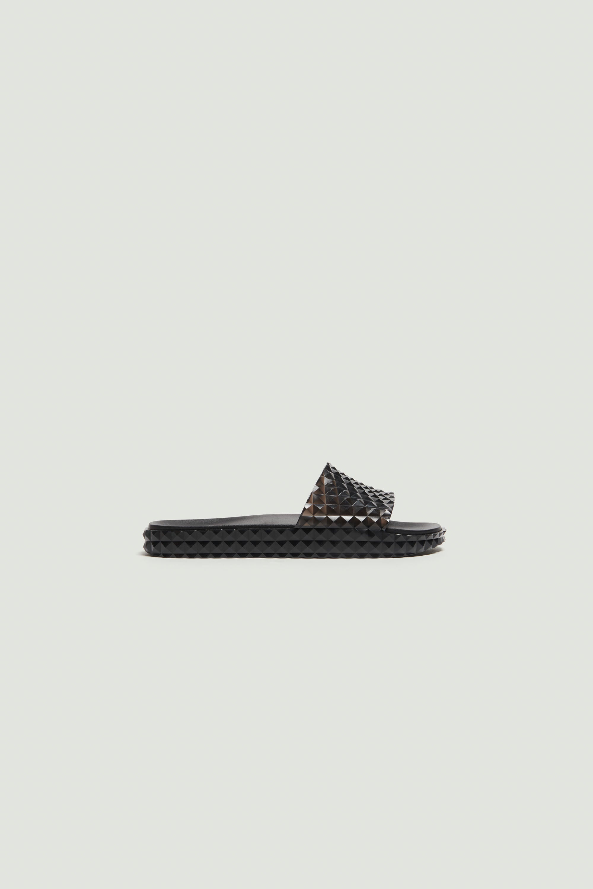 Ornate slide with orchid inspired floral embellishment, designed in collaboration with Melissa shoes. - Made in Brazil MATERIAL 100% Rubber