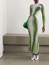 EDITORS'NOTES Y/PROJECT's designs always begin with an "abstract concept" - a sentiment that's clearly visible in this stretch-knit trompe l'oeil dress. It's cut to skim your figure and jacquard-knitted with a pixelated hourglass silhouette. Style it with a tonal-green clutch. SIZE & FIT Model measurements: - Fits true to size, take your normal size - Designed for a close fit - Lightweight knit - Model is 177cm/ 5'10" - Bust: 79cm/ 31" - Waist: 61cm/ 24" - Hip: 89cm/ 35" DETAILS & CARE - Tonal-green and silver stretch-knit - Slips on - 48% viscose, 20% polyester, 16% cupro, 8% metallic polyester, 7% polyamide, 1% elastane - Hand wash