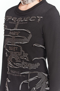 Fitted, long sleeve, jersey dress with Paris' Best jersey patch stitched across the chest and additional 'whisker' details stitched along the sleeves and body. - Made in Bulgaria MATERIAL 100% ORGANIC COTTON