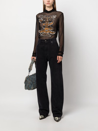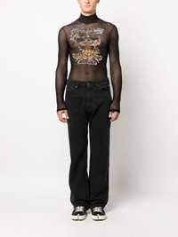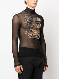logo-print sheer top Highlights - Black - Stretch-design - Sheer - Logo print to the front - Mock neck - Long sleeves - Straight hem Imported Composition Polyamide 92%, Spandex/Elastane 8% SIZE & FIT Model measurements Height 5 ft 9 in(1.74 m) Bust/Chest 31.1 in(79 cm) Hips 33.5 in(85 cm) Waist 23.2 in(59 cm) FittingInformation Made from a lightweight stretch fabric, this piece offers elasticity and flexibility when worn