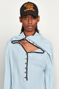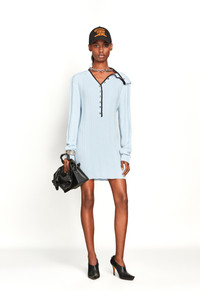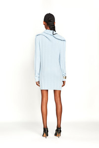 Regular fit, knit cardigan mini dress features a ruffled neckline attached to a detachable chain necklace that can adjust the shape of the ruffle. - Made in Portugal MATERIAL 100% MERINO WOOL