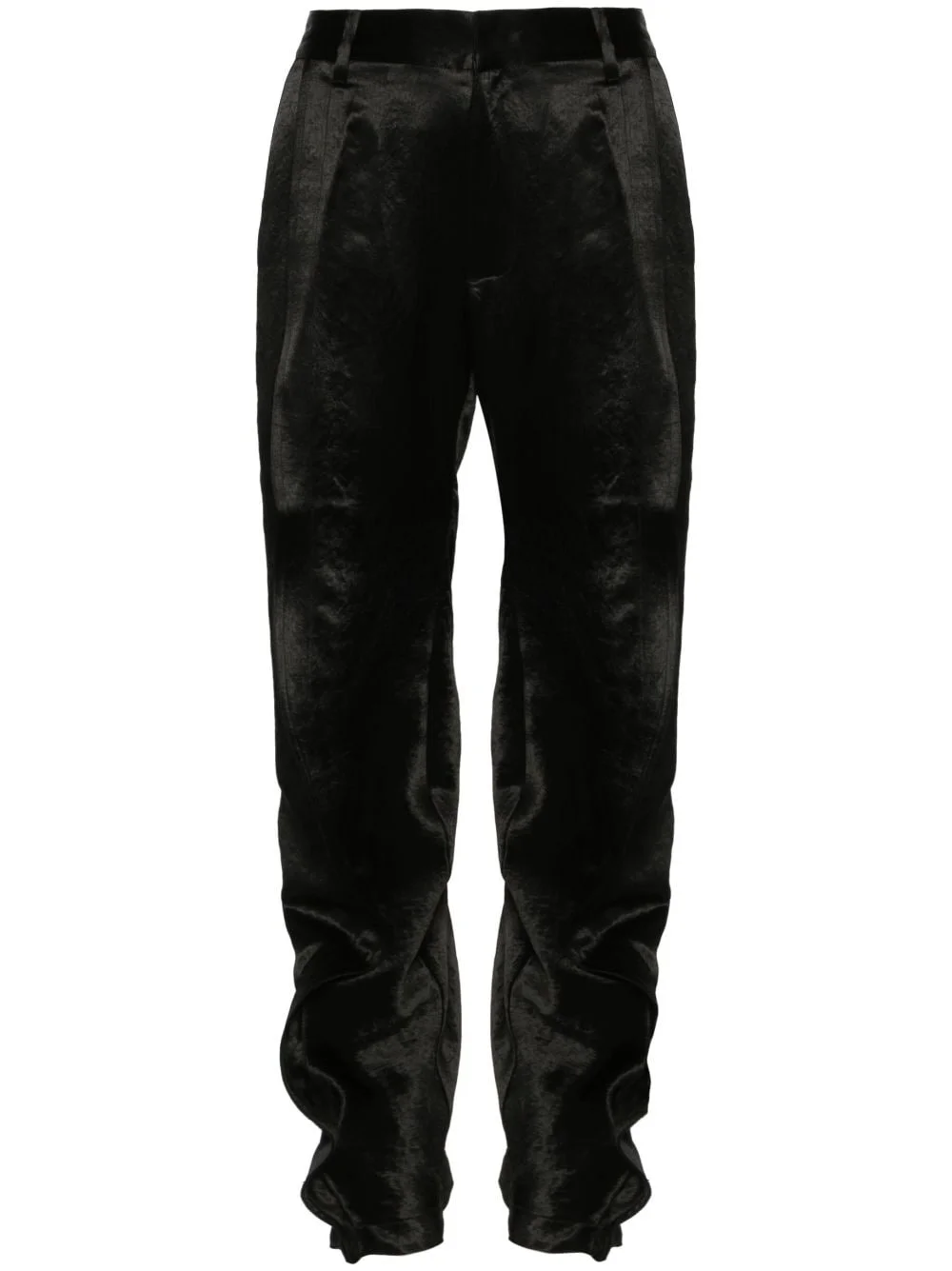 ruffled satin trousers Highlights - Black - Satin finish - Seam detailing - Belt loops - Concealed front fastening - Tapered leg - Two side slit pockets - Straight hem - Long length Imported Composition Lining: Viscose 100% Outer: Acetate 100% SIZE & FIT Model measurements Height 5 ft 10 in(1.77 m) Bust/Chest 32.28 in(82 cm) Hips 35.03 in(89 cm) Waist 25.19 in(64 cm) FittingInformation Designed for a tapered fit, these trousers allow for a close fit at the waist and a loose unrestricted fit over the leg with a closer fit towards the ankle Made from a midweight non-stretch fabric This piece fits true to size – take your usual size