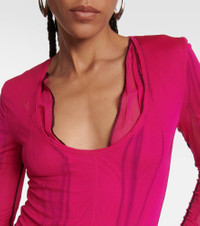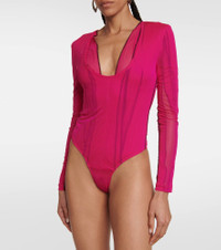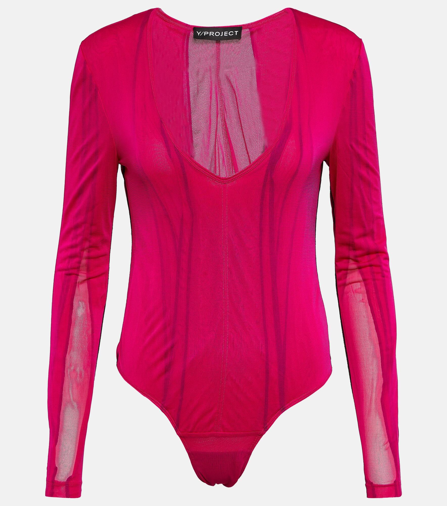 Y/Project is an innovator in contemporary womenswear. Boasting a semi-sheer quality, this tactile bodysuit has a V-neck fit with long sleeves and a high-leg base. Product Details - Material: 100% viscose - Care instructions: dry clean - Made in Portugal - Designer color name: Fucsia - Item number: P00800600 Size & Fit - Fits large to size - we recommend trying one size smaller - Semi-sheer - Fitted - Mid-weight material - High-cut leg - The model seen in the picture is 178cm-5'10" and wearing a size FR 34