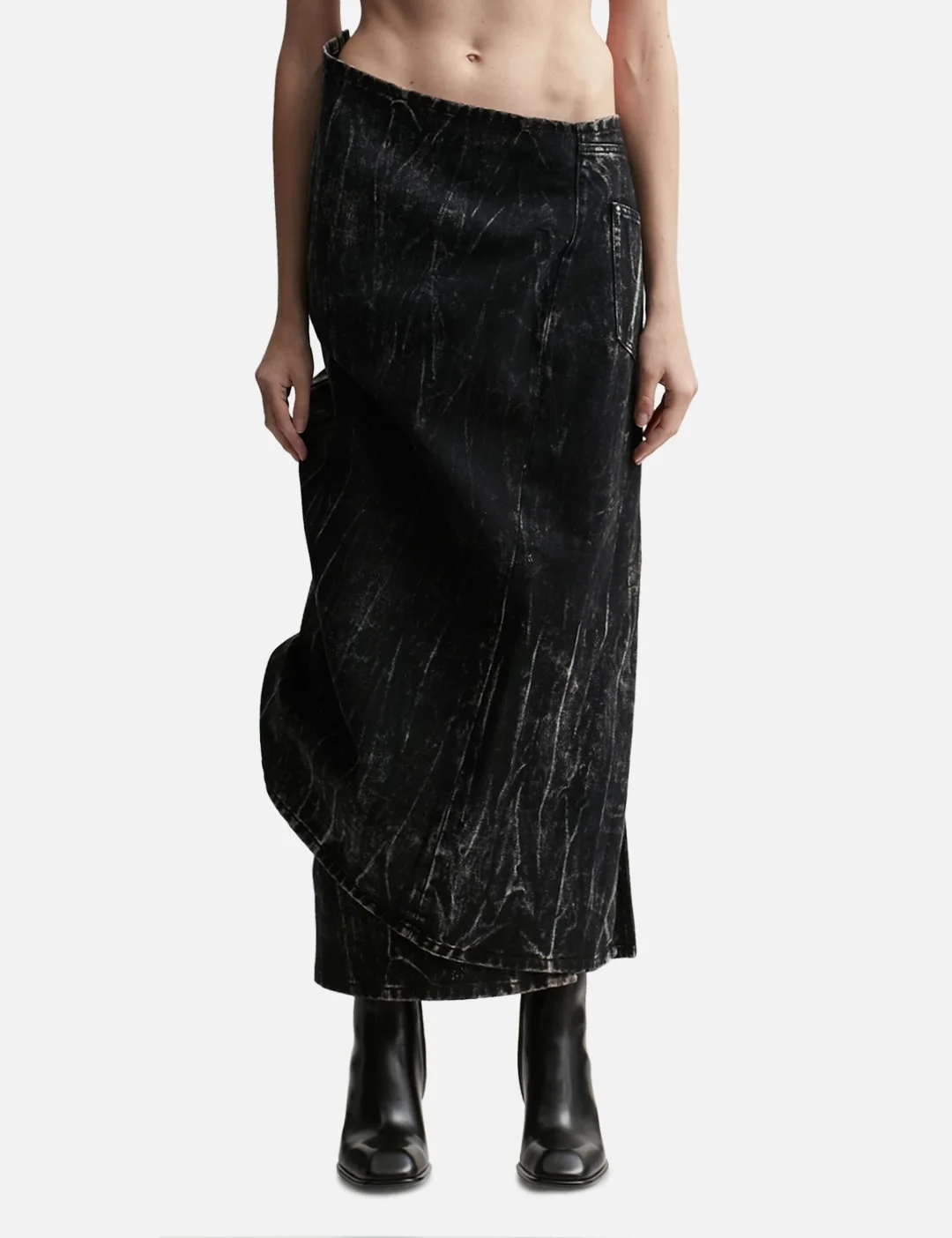 - Y/PROJECT - Velcro Denim Skirt - Cotton denim fabric with vertical whiskers - Velcro on the side to customize the silhouette - Rear center slit - Two rear patch pockets - Color: Black - Country Of Origin: FR - Material: 100% Cotton - See more Skirts and Clothing SIZING - Model wears size S - Model measures: Height 177cm, Chest 32"/81cm, Waist 23.5"/59.7cm, Hip 33’’/83.8cm