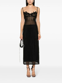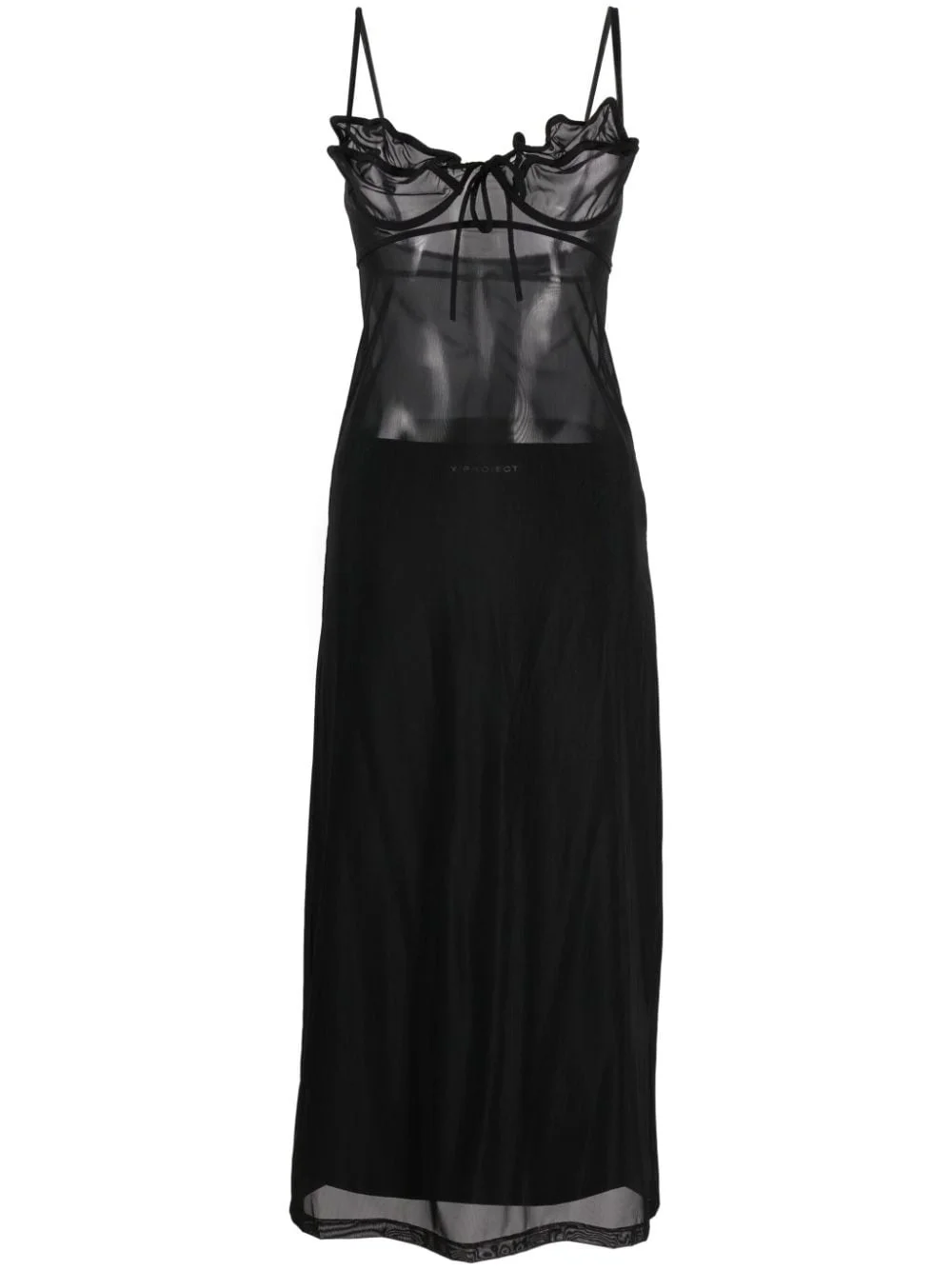 Wire mesh slip dress Y/Project is lauded for its irreverent take on staple silhouettes. A case in point, this black slip dress is crafted from semi-sheer stretch mesh and elevated with moulded wire cups that create an irregular neckline. Highlights - Black - Mesh - Stretch-design - Semi-sheer construction - Sweetheart neck - Rear hook fastening - Underwire cup - Spaghetti straps - Calf-length - Straight hem Imported Composition Outer: Polyamide 68%, Spandex/Elastane 32% Lining: Acetate 77%, Polyester 23% SIZE & FIT Model measurements Height 5 ft 11 in(1.8 m) Bust/Chest 33.07 in(84 cm) Hips 37.4 in(95 cm) Waist 25.19 in(64 cm) Measurement HIPS 38.58 in(98 cm) LENGTH 51.96 in(132 cm) WAIST 27.95 in(71 cm) FittingInformation Designed for a slim fit that sits just away from the body offering a close yet comfortable fit The detachable slip sits just away from the body, offering a close yet comfortable fit Made from a lightweight stretch fabric, this piece offers elasticity and flexibility when worn This piece fits true to size – take your usual size Washing instructions Dry Clean Only