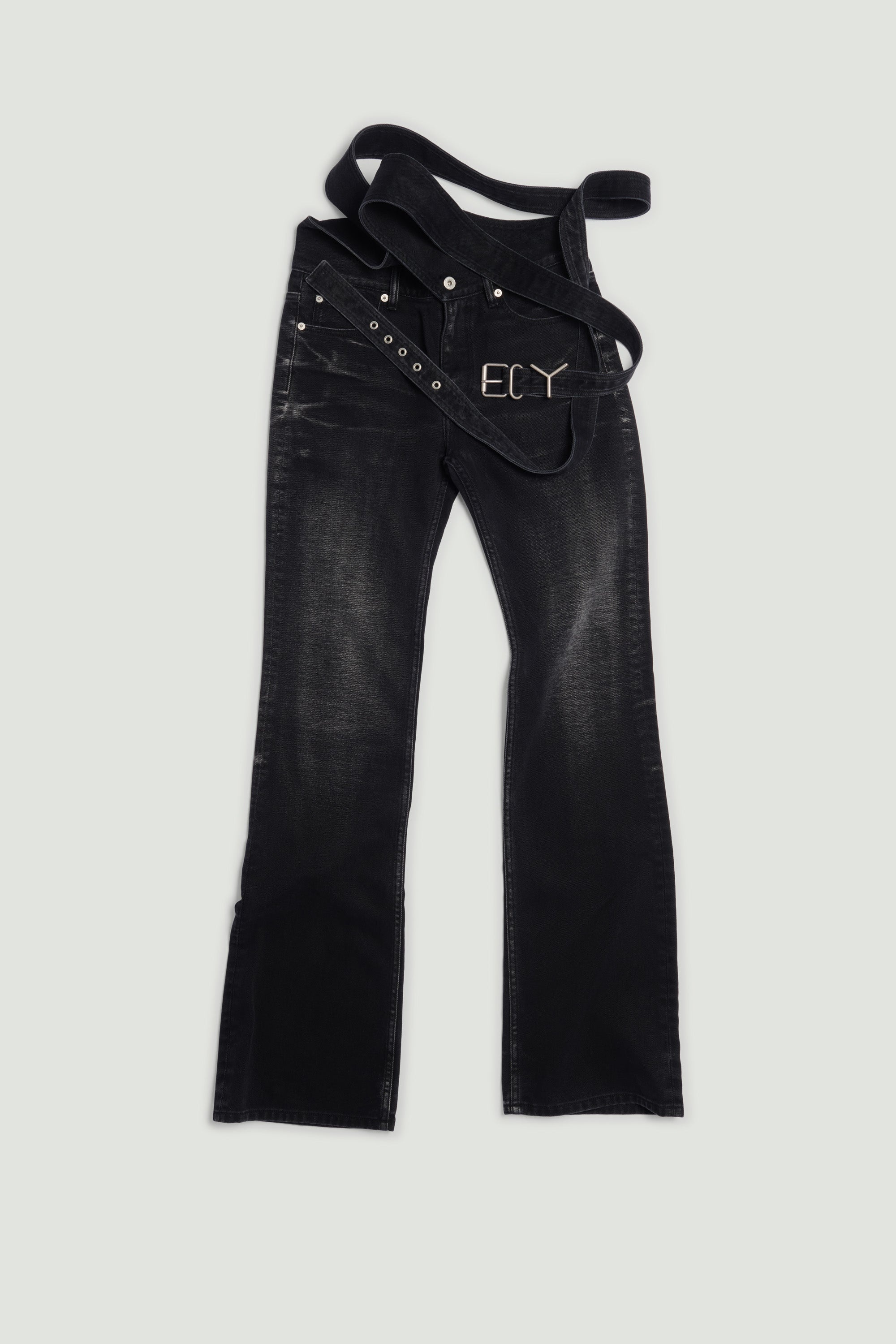 Discover the WRAP BELT JEANS. Fitted, low waisted jeans with two extended panels that wrap and belt around the waist with Y belt hardware. - Made in Portugal MATERIAL 100% COTTON