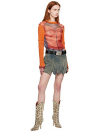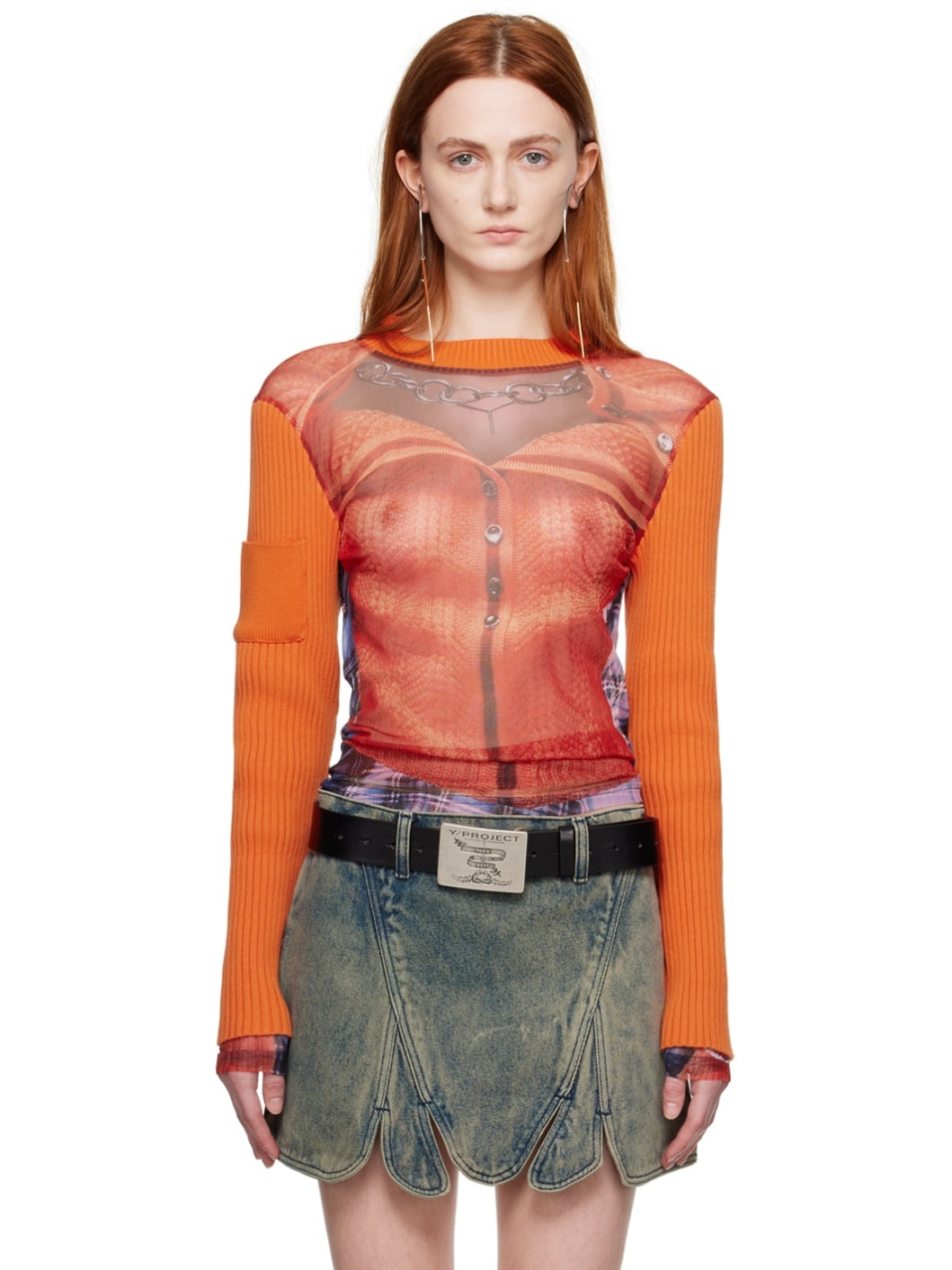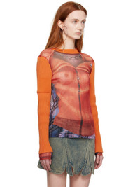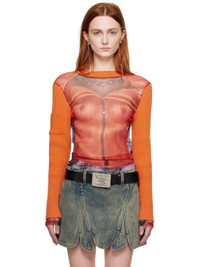 Orange Jean Paul Gaultier Edition Trompe L'Oeil Ruffle Cardigan Long Sleeve T-Shirt
