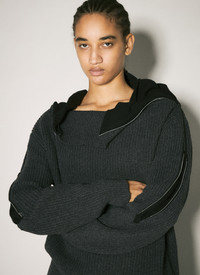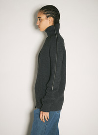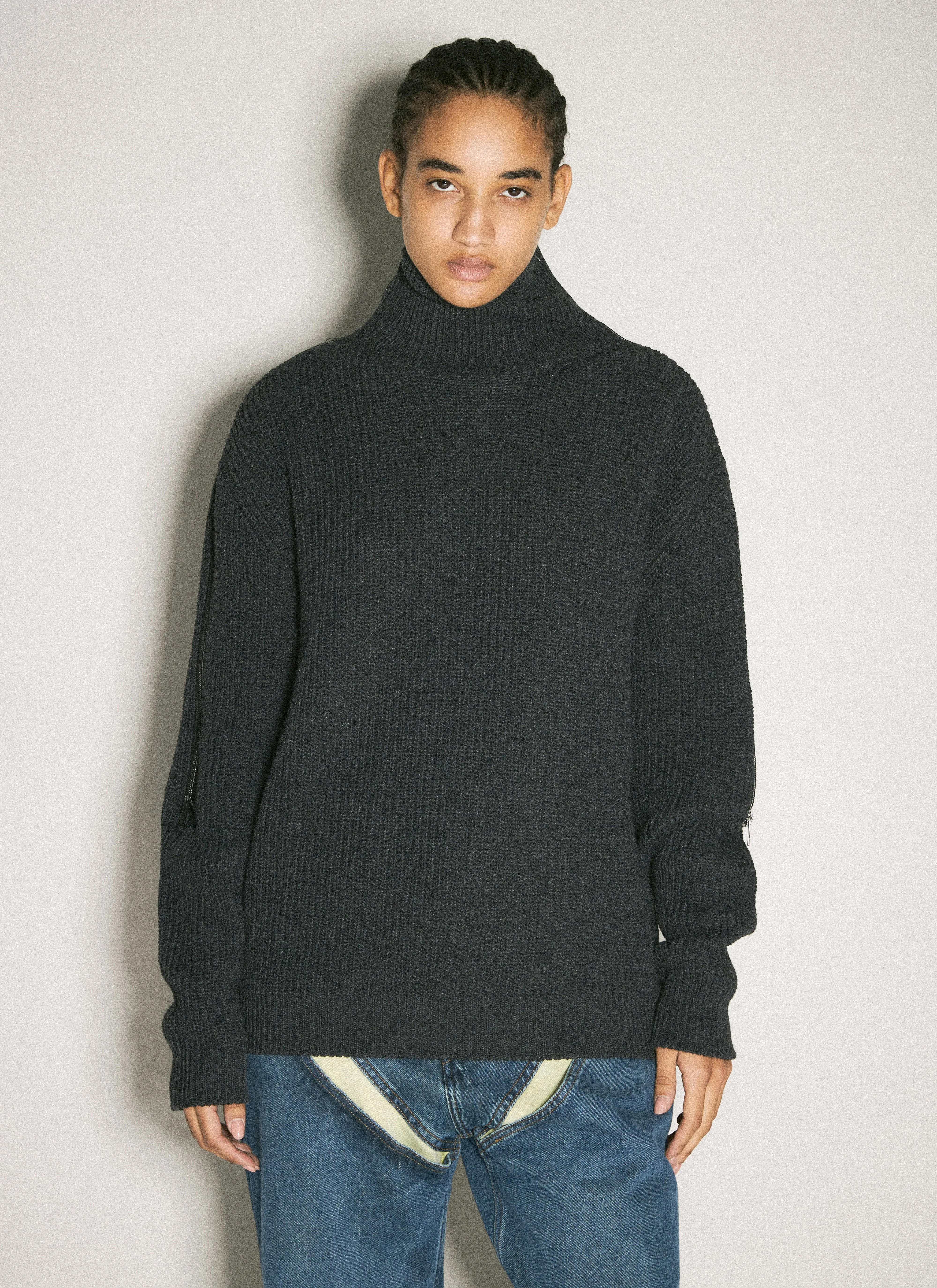 Rib knit sweater with zip-inserts. - High neck - Long sleeves - Adjustable zip fastening from neckline to sleeve - Ribbed - Made in Italy - 67% cotton, 18% polyester, 8% Wool, 4% Other Fibers, 2% Polyamide, 1% Elastane. Hand wash - Color: Grey - Code: 206SW008 DARK GREY