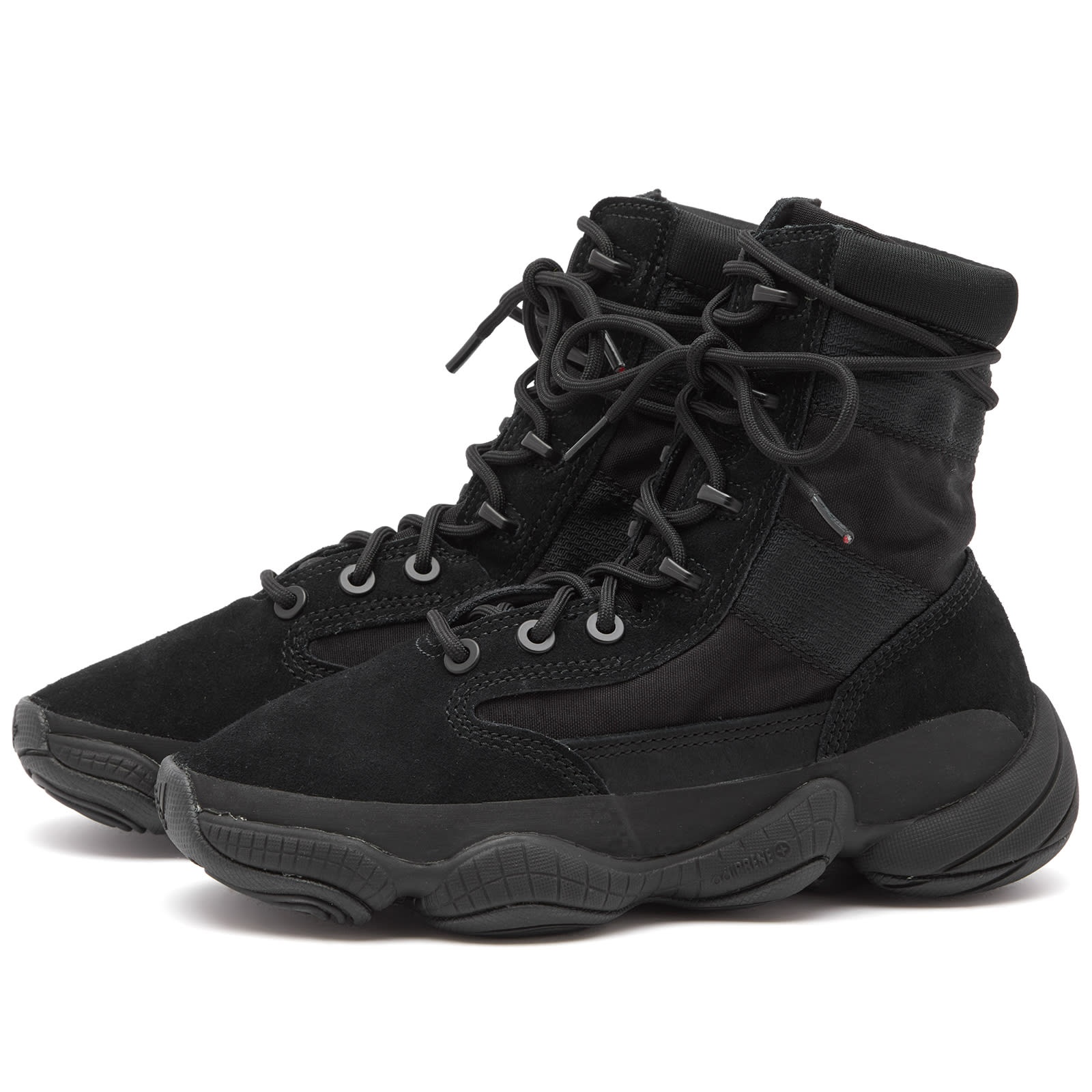Stepping outside of YEEZY’s usual realm of streetwear, the 500 High Tactical Boot is a style built for the outdoors. And, of course, it's a fashion statement. Ready for all adventures, whether you’re city shopping or blazing the trails, the bold “Utility Black” design features a boot-inspired lacing system and boasts a luxurious combination of suede, ballistic mesh, and nubuck leather on the upper. Underfoot, the label's coveted adiPrene-cushioning provides a stable and cushioned step, offering the perfect balance of style and performance. - Leather & Textile Upper - adiPrene-Cushioned Sole Unit - Rubber Outsole