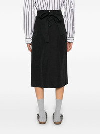 George midi skirt Highlights - Black - Front button placket - Rear tie fastening - Two side slit pockets Imported Composition Polyester 100% SIZE & FIT Model measurements Height 5 ft 9 in(1.76 m) Bust/Chest 31.88 in(81 cm) Hips 35.43 in(90 cm) Waist 24.8 in(63 cm) FittingInformation Designed with an asymmetric hem, this skirt is intended to be worn just below the waist Made from a midweight non-stretch fabric
