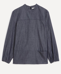 DETAILS Cotton chambray top Relaxed fit Long balloon sleeves Adjustable drawcords on cuffs Stand collar with back fastening Front seam pockets SIZE & FIT Model is 178cm/5'10"; Chest: 79cm; Waist: 62cm; Hip: 88cm and wears a size S COMPOSITION & CARE 100% Cotton Machine wash cold