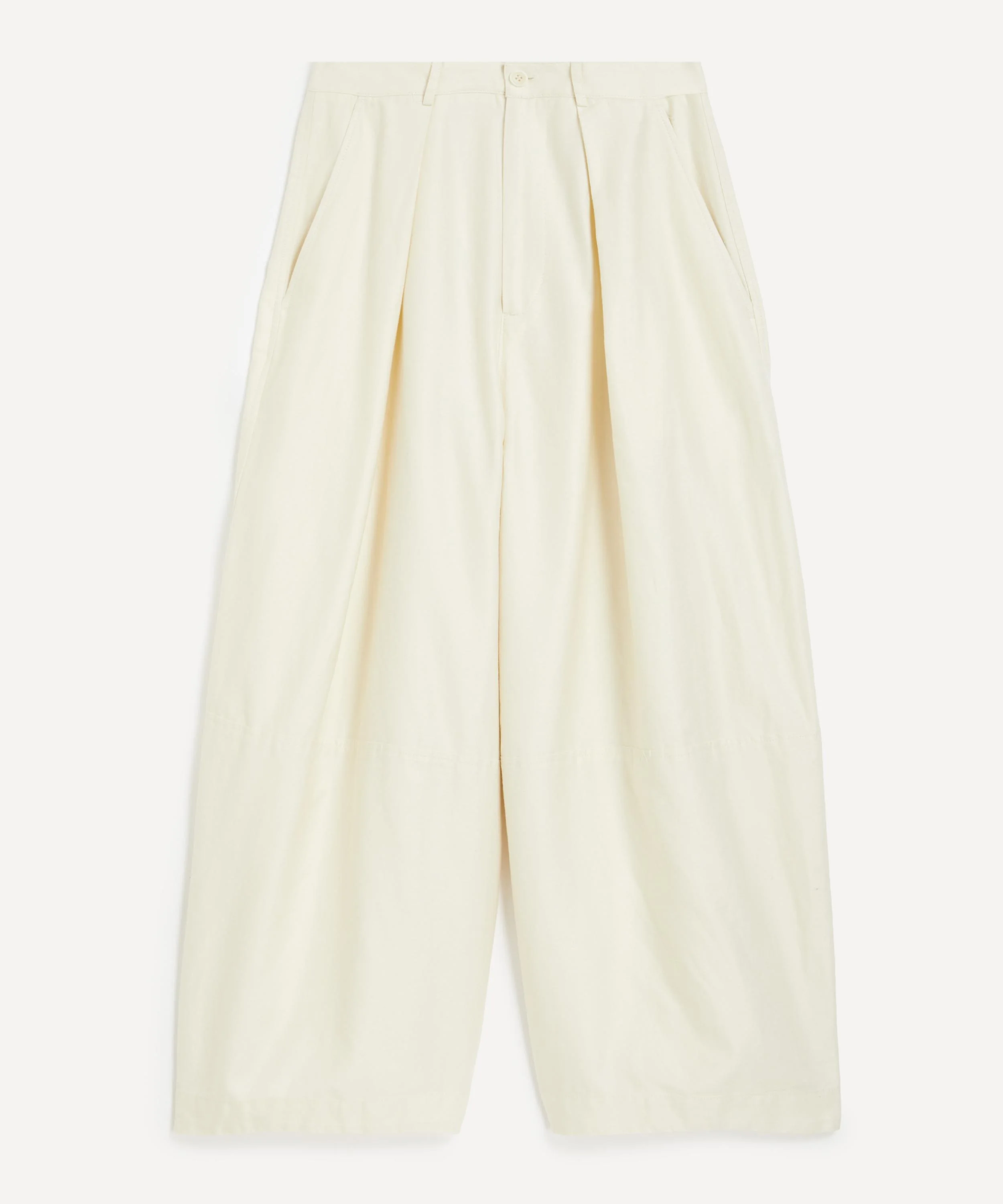 DETAILS Cotton-linen moleskin trousers Relaxed fit Wide leg High-waisted Corozo button fastening and zip fly Front pleats Side pockets SIZE & FIT Model is 179cm/5'10.5"; Chest: 81cm; Waist: 64cm; Hip: 89cm and wears S COMPOSITION & CARE 75% Cotton; 25% Linen Hand wash cold