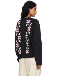 Knit cotton cardigan. · Intarsia floral graphics throughout · Rib-knit crewneck, hem, and cuffs · Button closure · Purl-knit placket · Raglan sleeves · Corozo hardware Available exclusively at SSENSE. Supplier color: Black/Pink 100% cotton. Made in India 252161F095002