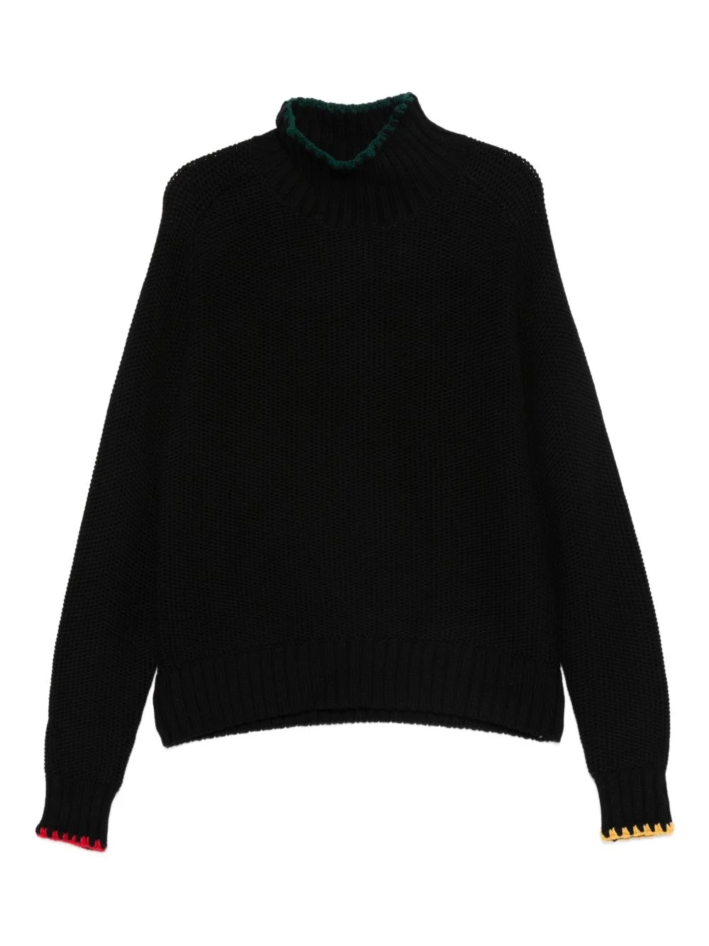 waffle high-neck sweater Highlights - Black - Waffle weave - High neck - Raglan sleeves - Blanket stitch embroidery at edges - Rib knit trim Imported Composition Merino 100% Washing instructions Read Manufacturer Guidelines