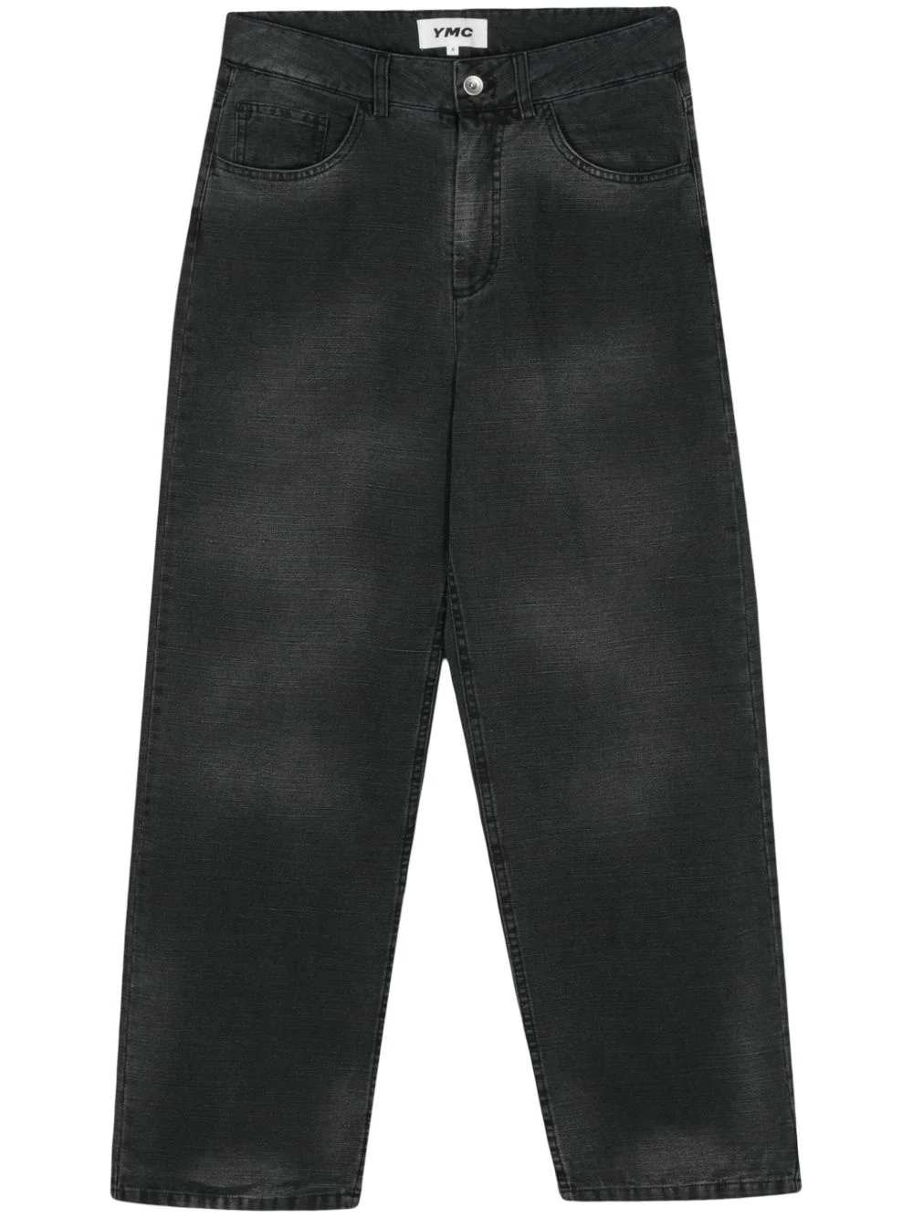 wide-leg washed jeans Highlights - Black - Cotton-linen blend - Canvas - Washed faded denim - Belt loops - Classic five pockets - Full-length - Logo patch to the rear - Wide leg - Front concealed zip-fly and button fastening Imported Composition Cotton 58%, Linen/Flax 42%