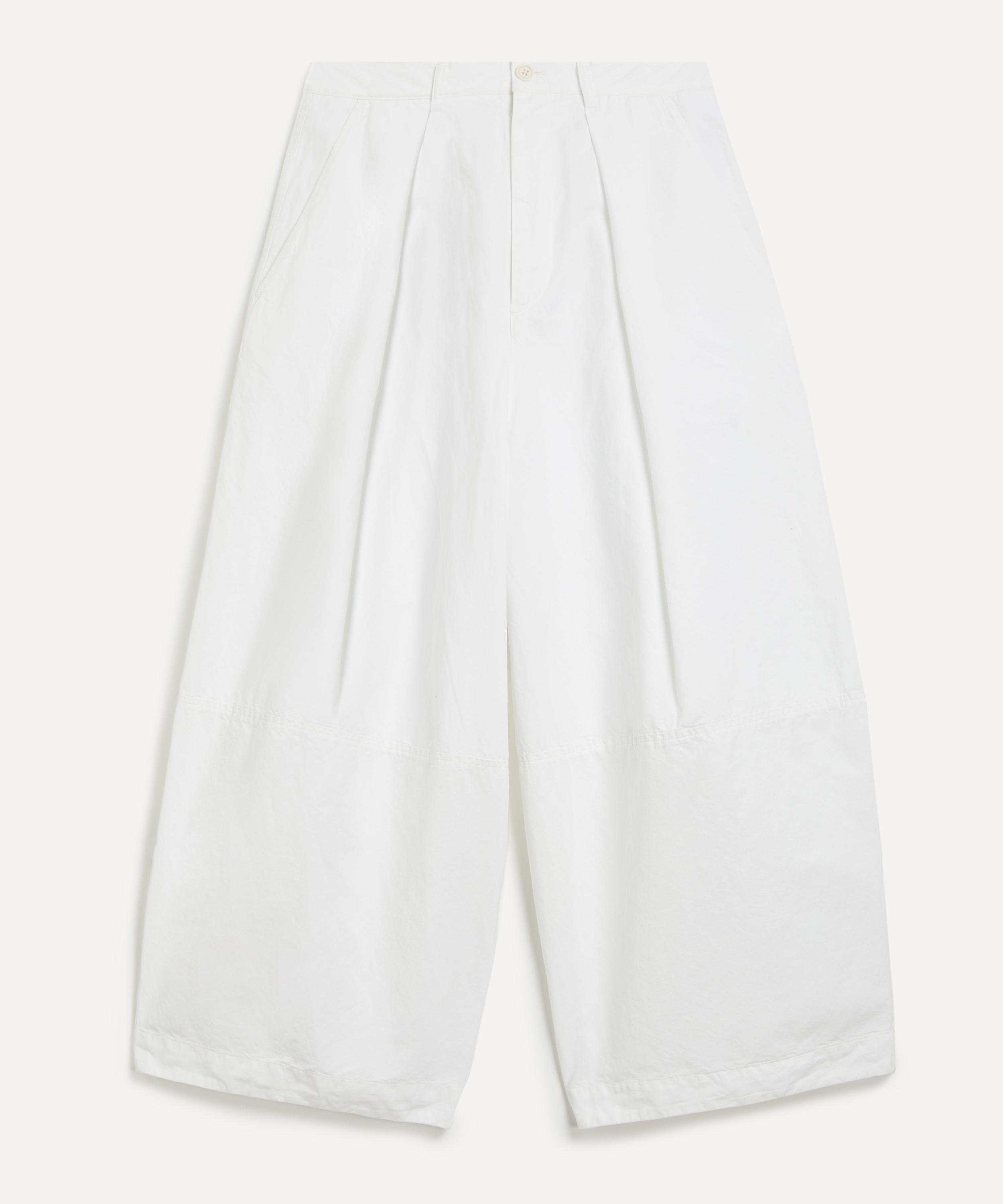 DETAILS High-waisted, wide-leg trousers Midweight cotton-linen twill Relaxed fit Ankle-length hem Corozo button fastening YKK zip fly Belt loops Side pockets Back patch pocket SIZE & FIT Model is 177cm/5'9.5"; Chest: 77cm; Waist: 23cm; Hip: 88cm and wears a size S COMPOSITION & CARE 80% Cotton; 20% Linen Machine wash, cold