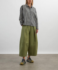 DETAILS Cotton-linen trousers Relaxed fit Wide leg High-waisted Corozo button fastening and zip fly Front pleats Side pockets SIZE & FIT Model is 179cm/5'10.5"; Chest: 81cm; Waist: 64cm; Hip: 89cm and wears S COMPOSITION & CARE 80% Cotton; 20% Linen Machine wash cold