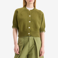 YMC takes wardrobe staples up a notch with the short sleeve YMC Kwai knit cardigan. Made from soft, luxurious cotton, it’s all about quality and subtle details - like hand-crocheted stitching at the sleeves for that extra bit of charm. - 100% Cotton - Cropped Fit - Corozo Button Closure - Rib Knit Neck, Cuffs & Hem - Hand Crochet Stitch Detail - Product Code: Q8YMA-30