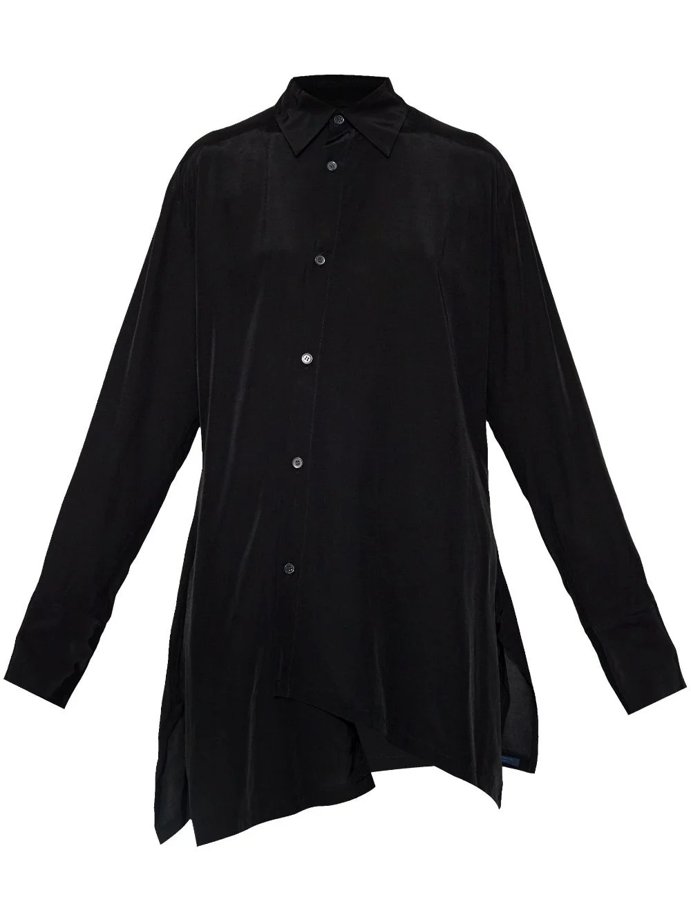 Asymetric blouse Highlights - Black - Satin finish - Button fastening - Classic collar - High-cuffs - Buttoned cuffs - Asymmetric hem Imported Composition Viscose 100%