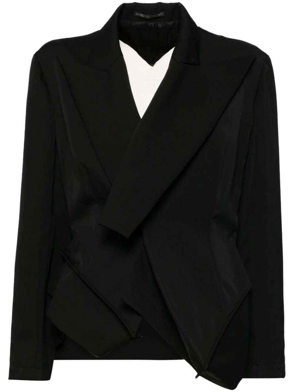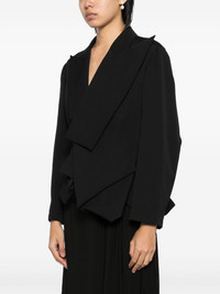 asymmetic wool blazers Highlights - Black - Wool - Asymmetric design - Wide peak lapels - Long sleeves - Press-stud fastening Imported Composition Lining: Cupro 100% Outer: Wool 100% SIZE & FIT Model measurements Height 5 ft 10 in(1.77 m) Bust/Chest 31.49 in(80 cm) Hips 35.43 in(90 cm) Waist 25.19 in(64 cm) FittingInformation Designed for a slim fit that sits just away from the body offering a close yet comfortable fit Made with a fine knit, this piece offers some stretch