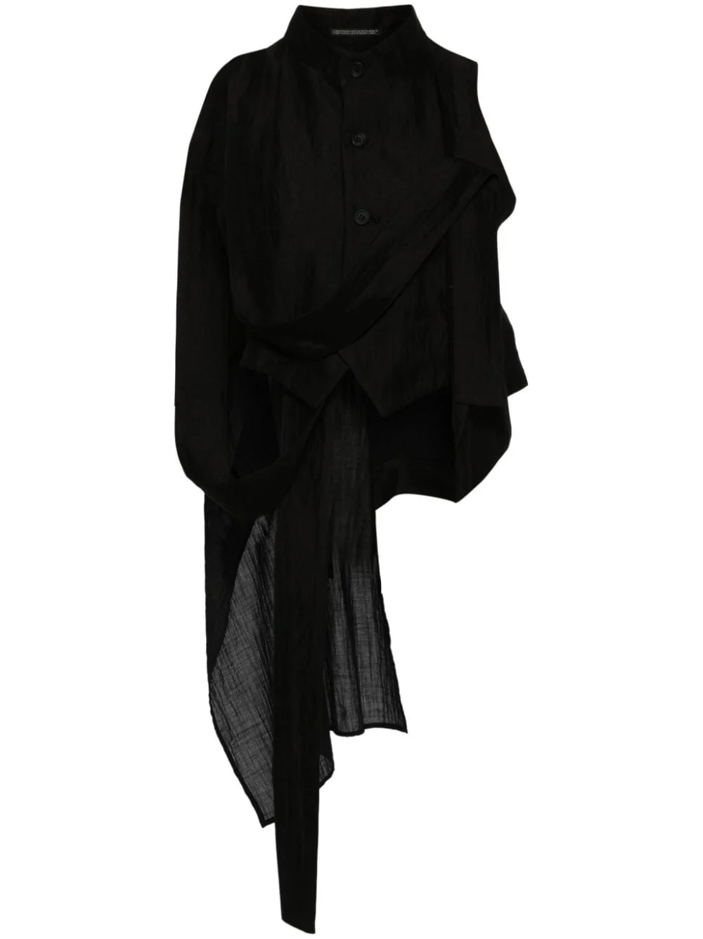 asymmetric cropped shirt Highlights - Jet black - Panelled design - Asymmetric design - Cut-out detailing - Strap detailing - Band collar - Front button fastening - Sleeveless - Asymmetric hem - Cropped Imported Composition Linen/Flax 100%