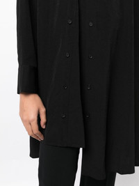 asymmetric decorative button-detail shirt Highlights - Core black - Asymmetric design - Decorative button detailing - Spread collar - Long sleeves - Buttoned cuffs - Asymmetric hem Imported Composition Body: Triacetate 57%, Polyester 43% SIZE & FIT Model measurements Height 5 ft 10 in(1.77 m) Bust/Chest 31.49 in(80 cm) Hips 35.43 in(90 cm) Waist 25.19 in(64 cm) FittingInformation Designed for an oversized fit, offering additional room throughout Made from a midweight non-stretch fabric This piece fits true to size – those with a petite frame may wish to take one size down Washing instructions Dry Clean Only