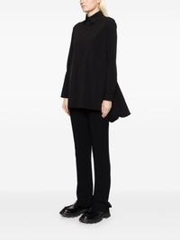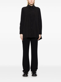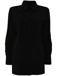 asymmetric shirt Highlights - Black - Asymmetric design - Front button fastening - Classic collar - Shirt sleeves - Side slits Imported Composition Nylon 100% SIZE & FIT Model measurements Height 5 ft 9 in(1.76 m) Bust/Chest 31.1 in(79 cm) Hips 35.03 in(89 cm) Waist 24.4 in(62 cm) FittingInformation Designed to be unstructured, offering a loose fit throughout Made from a lightweight non-stretch fabric