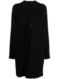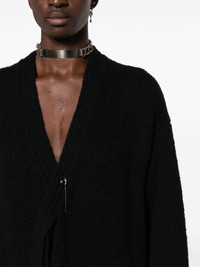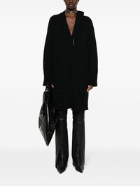 asymmetric V-neck cardi-coat Highlights - Black - Alpaca wool-blend - Knitted construction - Asymmetric design - Plunging v-neck - Drop shoulder - Bar-pin fastening - Long sleeves - Two side patch pockets - Ribbed cuffs and hem Imported Composition Alpaca 65%, Nylon 19%, Wool 16% SIZE & FIT Model measurements Height 5 ft 10 in(1.77 m) Bust/Chest 32.28 in(82 cm) Hips 35.03 in(89 cm) Waist 25.19 in(64 cm) FittingInformation Designed to be unstructured, offering a loose fit throughout Made with a midweight knit, this piece offers some stretch This piece fits true to size – take your usual size Washing instructions Dry Clean Only