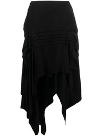 asymmetric wool-blend midi skirt This black midi skirt speaks to Yohji Yamamoto's affinity for spliced silhouettes and monochrome palettes. It’s cut from a black wool blend and falls to an asymmetric hem. Highlights - Black - Wool blend - Asymmetric design - High-waisted - Mid-length Imported Composition Rayon 100%, Wool 85%, Nylon 15% SIZE & FIT Model measurements Height 5 ft 10 in(1.78 m) Bust/Chest 31.49 in(80 cm) Hips 37 in(94 cm) Waist 23.62 in(60 cm) FittingInformation Designed with an asymmetric hem, this skirt is intended to be worn high on the waist Made from a midweight non-stretch fabric, this piece offers minimal elasticity when worn This piece fits true to size – take your usual size Washing instructions Dry Clean Only