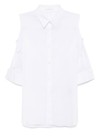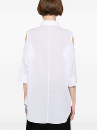 asymmetrical-shoulder shirt Highlights - White - Front button fastening - Cut-out detailing - Buttoned cuffs Imported Composition Cotton 100% SIZE & FIT Model measurements Height 5 ft 10 in(1.78 m) Bust/Chest 29.92 in(76 cm) Hips 34.64 in(88 cm) Waist 24.8 in(63 cm) FittingInformation Designed to be unstructured, offering a loose fit throughout Made from a lightweight non-stretch fabric
