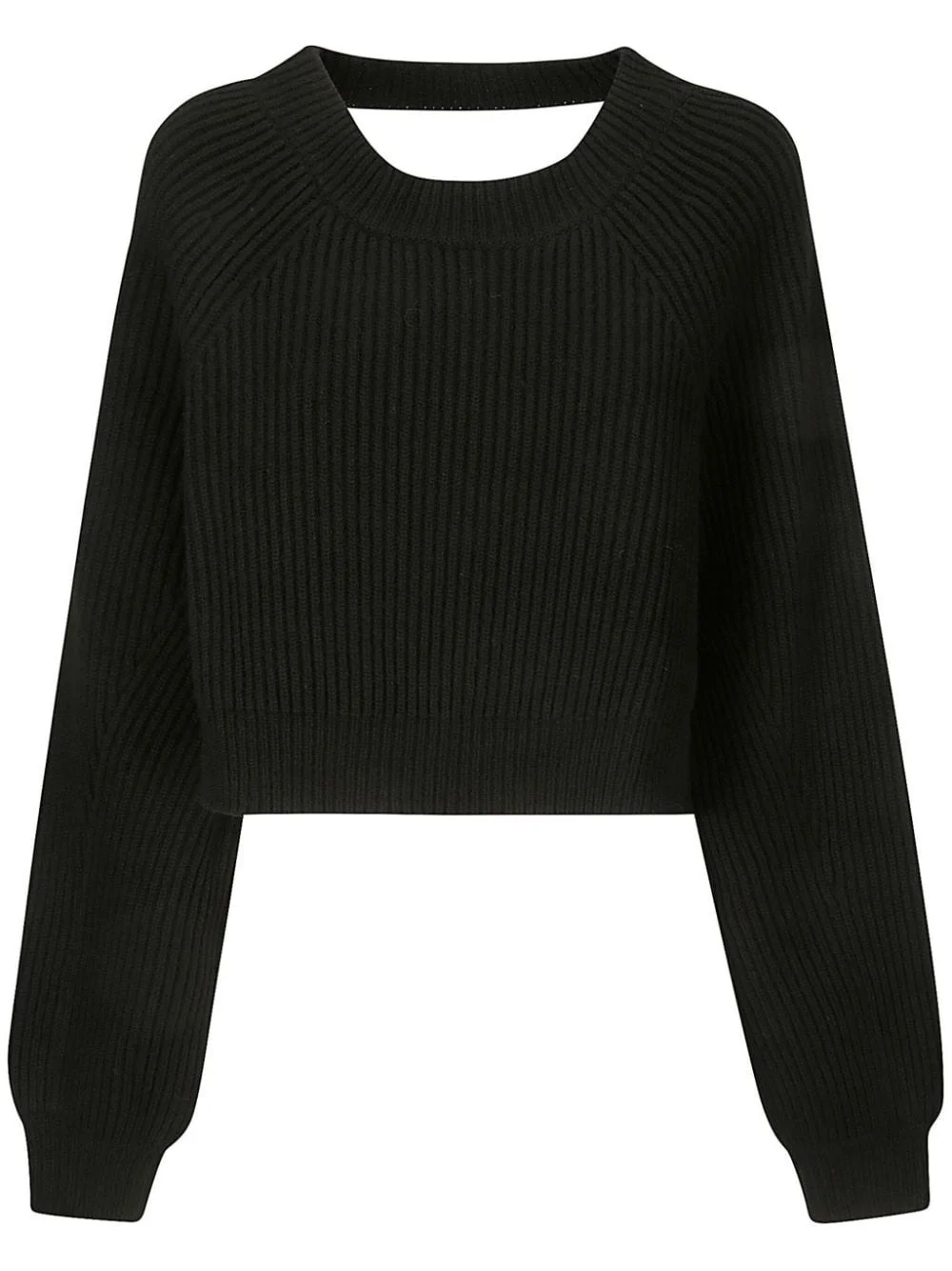 backless cropped top Highlights - Black - Wool blend - Ribbed knit - Crew neck - Open back - Adjustable strap to the rear - Long sleeves - Ribbed edge Imported Composition Wool 80%, Fabric 20%