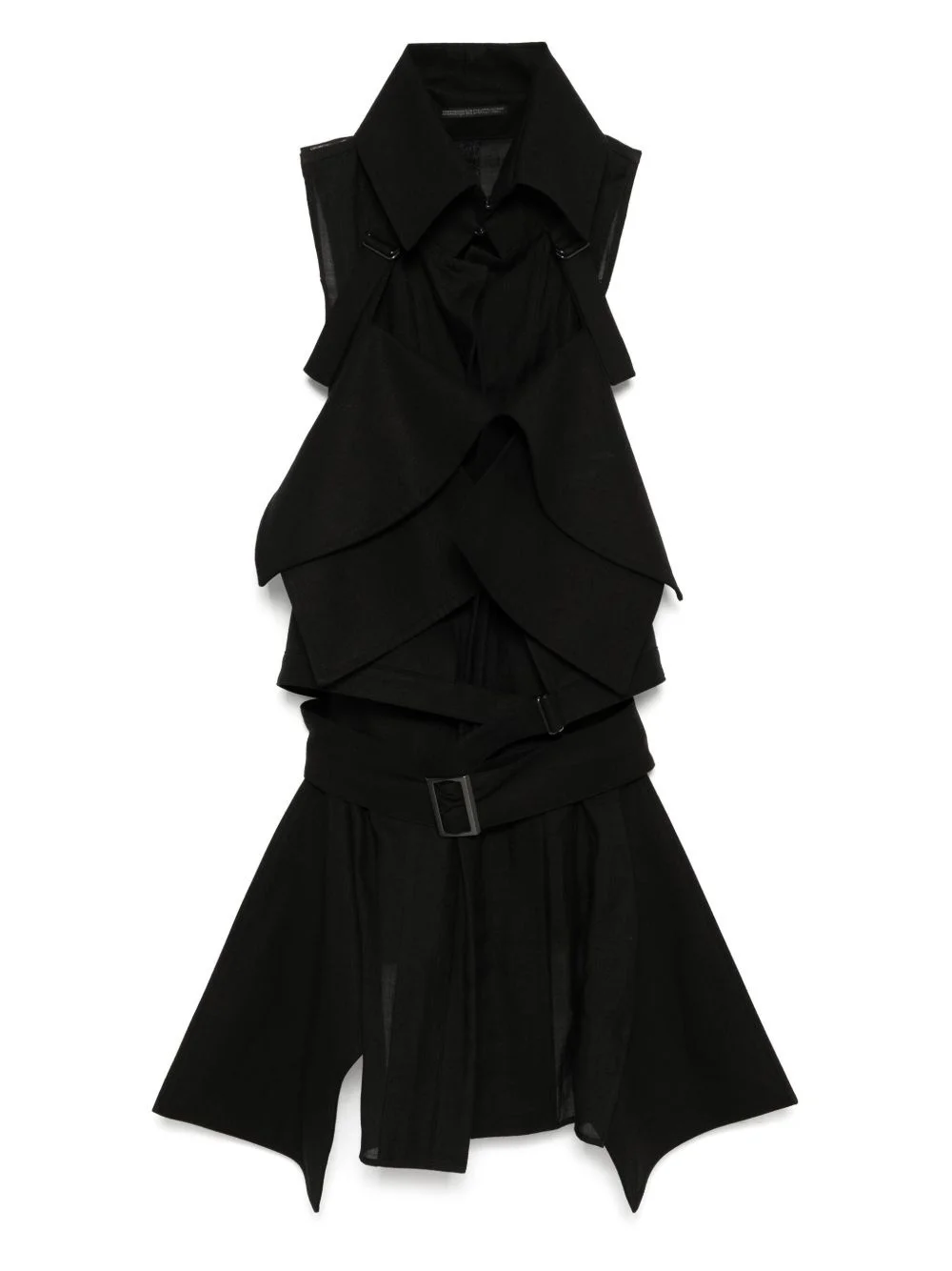 belted jacket Highlights - Black - Concealed front press-stud fastening - Strap fastening - Sleeveless - Asymmetric hem Imported Composition Hemp 55%, Cotton 45% SIZE & FIT Model measurements Height 5 ft 9 in(1.76 m) Bust/Chest 31.1 in(79 cm) Hips 35.03 in(89 cm) Waist 24.4 in(62 cm) FittingInformation Designed for a slim fit that sits just away from the body offering a close yet comfortable fit The belt offers adjustability for fitted preferences Made from a midweight non-stretch fabric Washing instructions Dry Clean Only