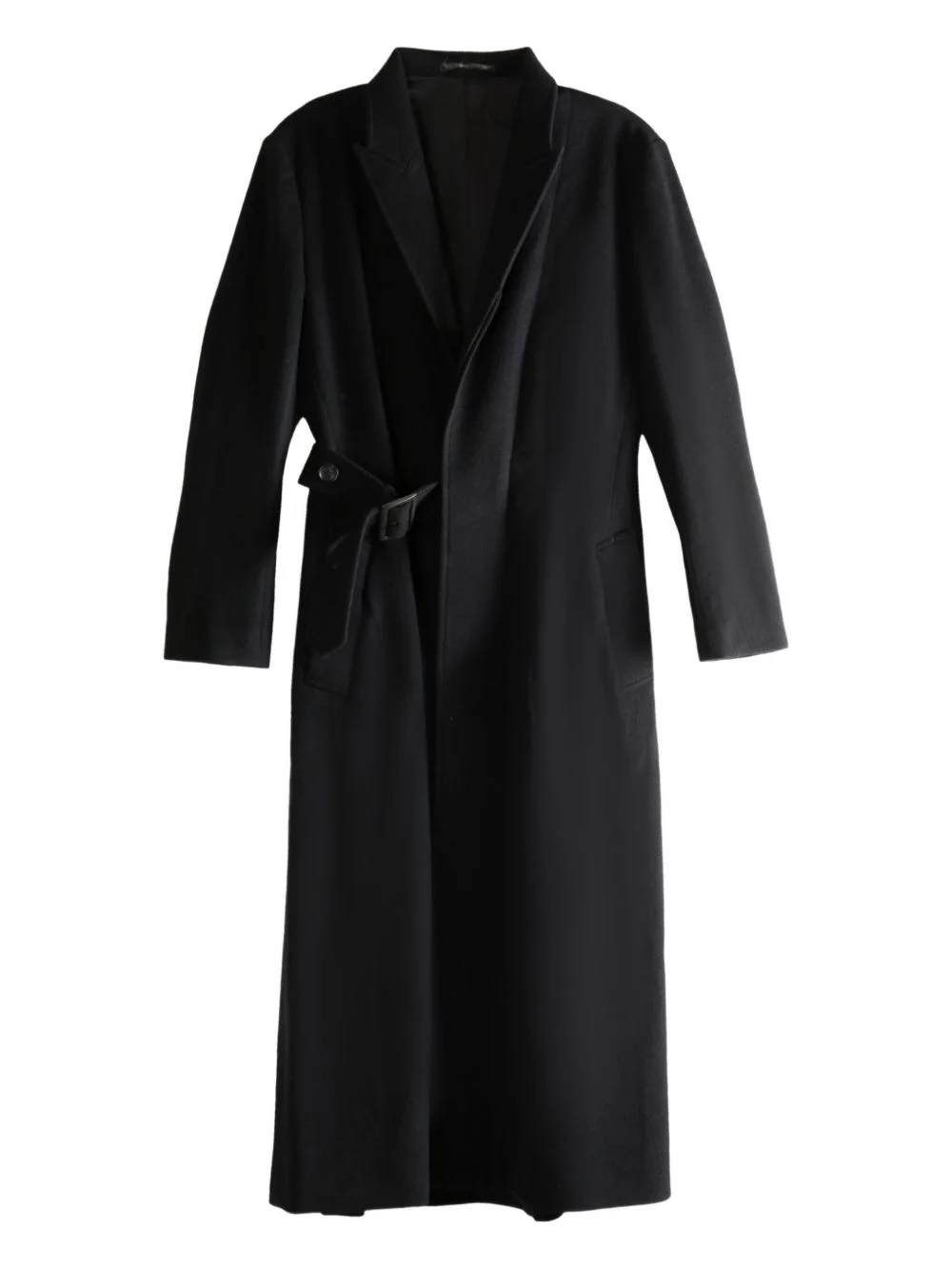 belted flared coat Highlights - Black - Wool-cashmere blend - Belted waist - Notched lapels - Welt pockets - A-line shape Made in France Composition Wool 90%, Cashmere 10% Washing instructions Read Manufacturer Guidelines