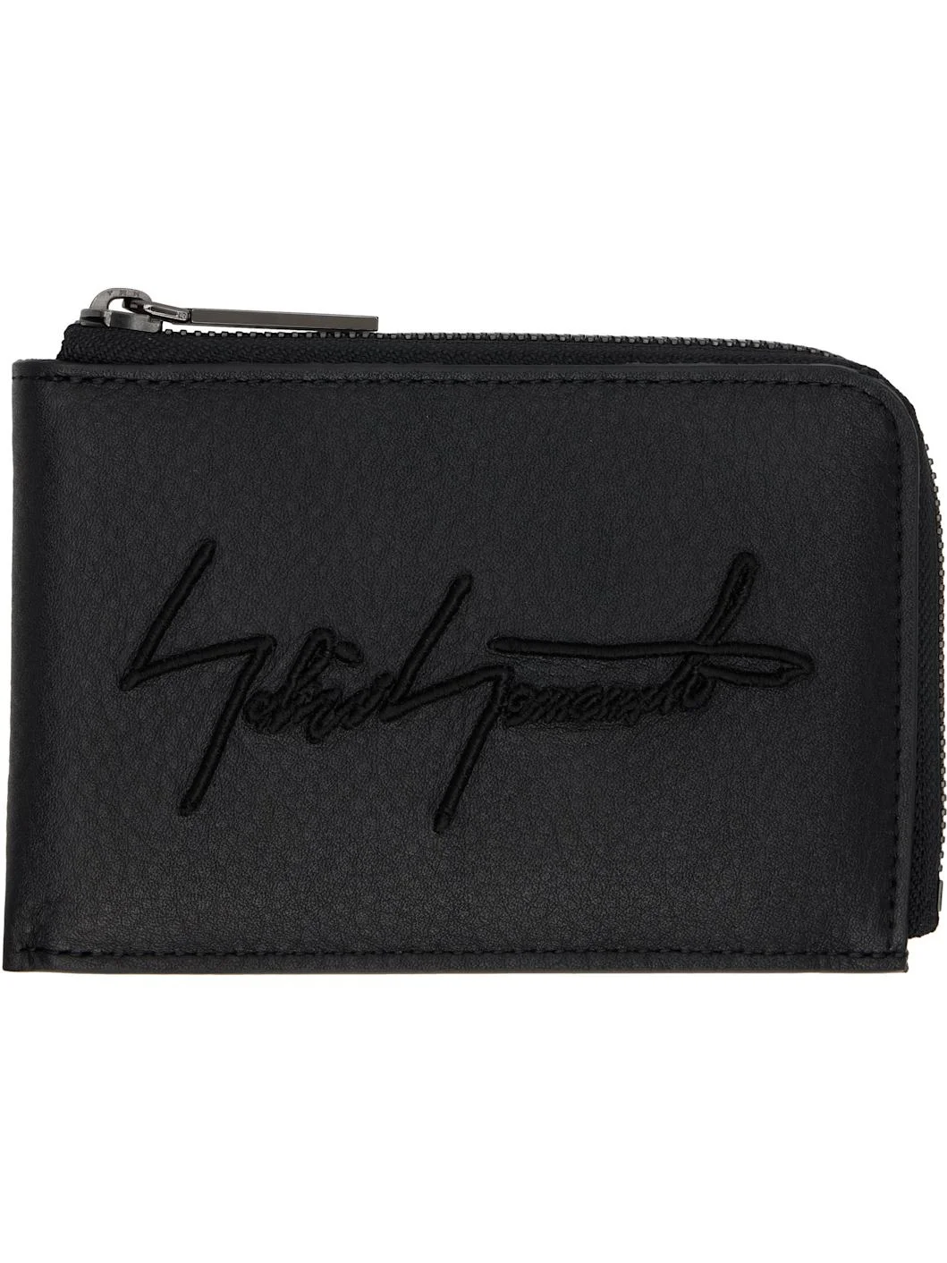 Grained leather wallet. · Embroidered logo at face · Zip closure · Four card slots and one note slot at interior · Logo-engraved gunmetal-tone hardware · H3.75" x W5.5" x D0.5" Part of the discord YOHJI YAMAMOTO collection. Supplier color: Black Leather. Made in Japan 252573F040003