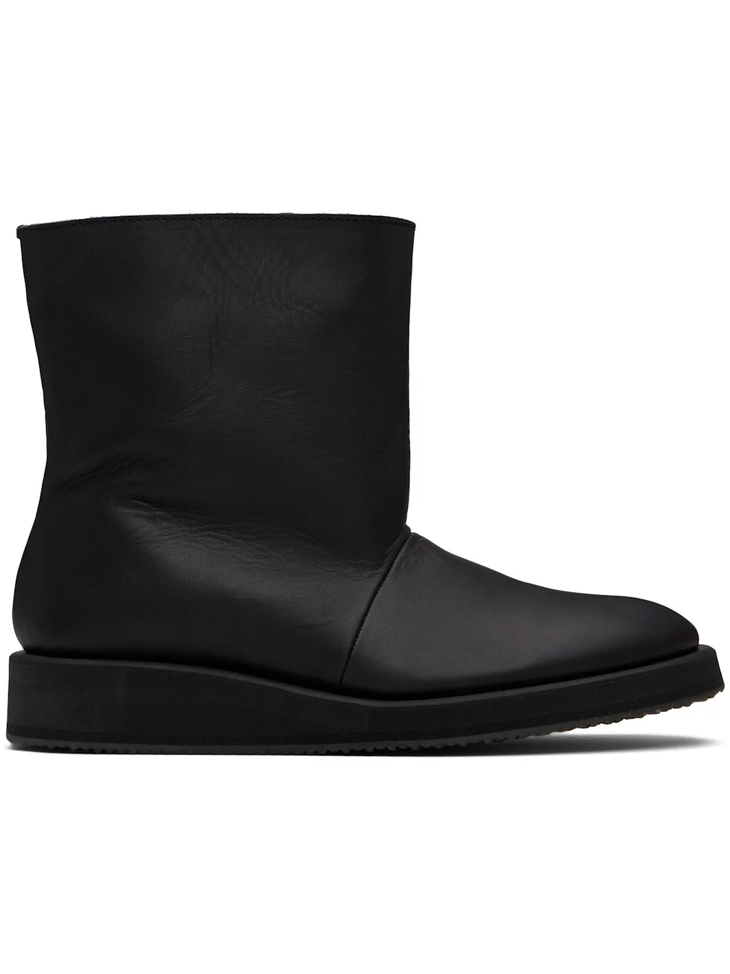 Ankle-high creased leather boots. · Grained leather lining · Foam rubber midsole · Treaded rubber sole · Heel: H1.25" Supplier color: Black Upper: leather. Sole: rubber. Made in Japan 251573F114000