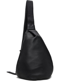 Grained leather shoulder bag. · Convertible and adjustable crossbody strap · Converts from left or right shoulder · Pleat and embossed logo at face · Zip closure at back face · Zip pocket at interior · Twill lining · H15" x W12" x D5" Part of the discord YOHJI YAMAMOTO collection. Supplier color: Black Leather. Made in Japan 252573F048007