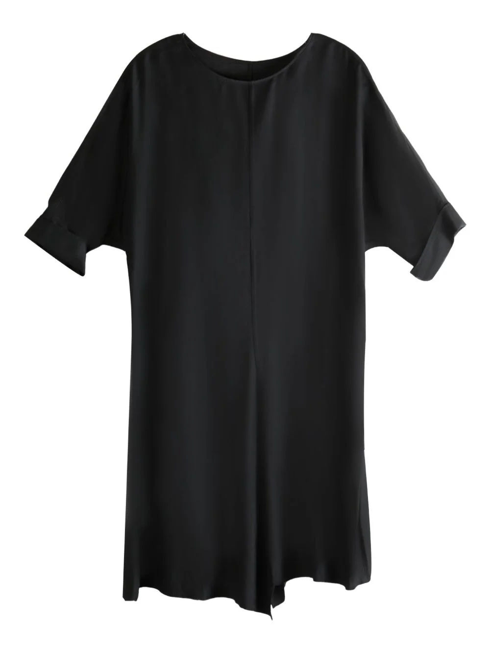 boat-neck rolled-sleeve midi dress Highlights - Black - Boat neck - Rolled sleeves - Relaxed fit - Centre seam - Straight hem Made in France Composition Viscose 100%
