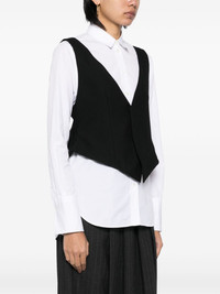 single-breasted waistcoat Highlights - Black - Wool-cotton blend - Gabardine weave - Concealed front press-stud fastening - V-neck - Sleeveless - Draped detailing - Concealed rear press-stud fastening - Asymmetric hem Imported Composition Lining: Nylon 100% Outer: Wool 58%, Cotton 42% SIZE & FIT Model measurements Height 5 ft 10 in(1.77 m) Bust/Chest 31.49 in(80 cm) Hips 35.43 in(90 cm) Waist 25.19 in(64 cm) FittingInformation Designed to be unstructured, offering a loose fit throughout Made from a midweight non-stretch fabric
