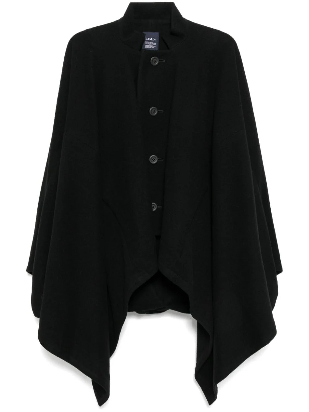 button-up cape Highlights - Black - Wool blend - Front button fastening - Two side patch pockets - Wide sleeves - Asymmetric hem Imported Composition Wool 90%, Nylon 10% SIZE & FIT Model measurements Height 5 ft 10 in(1.77 m) Bust/Chest 31.49 in(80 cm) Hips 35.43 in(90 cm) Waist 25.19 in(64 cm) FittingInformation Designed to be unstructured, offering a loose fit throughout Made from a midweight non-stretch fabric
