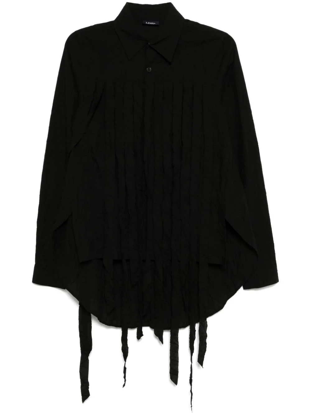 crease-effect shirt Highlights - Black - Cotton - Front button fastening - Crease effect - Stripe detailing - Long sleeves - Buttoned cuffs - High-low hem - Curved hem Imported Composition Cotton 100% SIZE & FIT Model measurements Height 5 ft 10 in(1.77 m) Bust/Chest 31.49 in(80 cm) Hips 35.43 in(90 cm) Waist 25.19 in(64 cm) FittingInformation Designed for a relaxed fit, this piece allows for comfort and movement when worn Made from a midweight non-stretch fabric