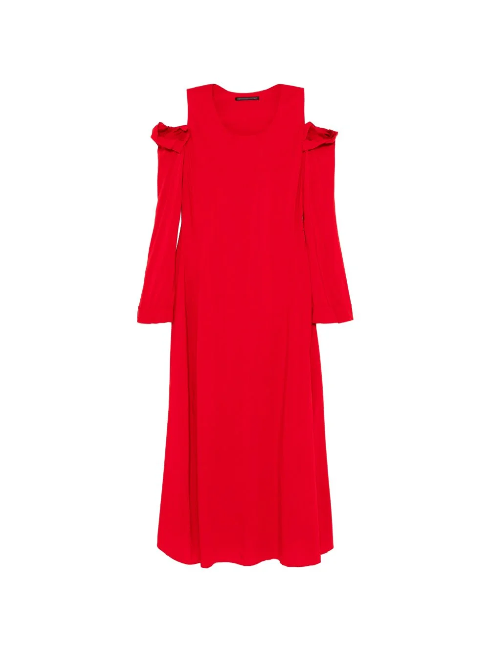 crushed-sleeves maxi dress Highlights - Bright red - Side zip fastening - Ruffle detail - Long sleeves Imported Composition Outer: Rayon 100% Silk 100% Washing instructions Dry Clean Only