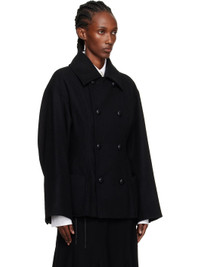 Wool-blend melton coat. · Darts throughout · Spread collar · Double-breasted button closure · Patch pockets at front · Dropped shoulders · Surgeon's cuffs · Darts at back · Full satin lining Supplier color: Black Body: 75% wool, 15% polyester, 5% nylon, 5% acrylic. Lining: 100% cupro. Made in Japan 252573F059001