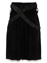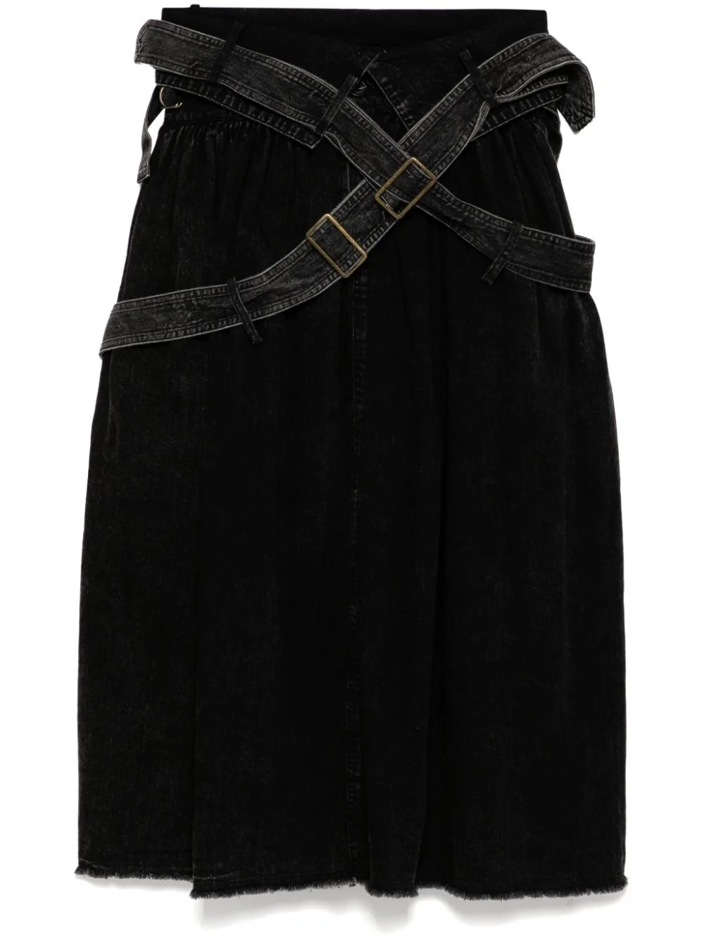 denim skirt Highlights - Black - Cotton - Front button and zip fastening - Belt loops - Adjustable waist strap - Detachable and adjustable waist belt - Panelled design - Fringed edge Imported Composition Cotton 100%