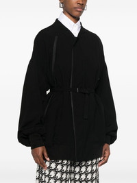 double-breasted jacket Highlights - Black - Double-breasted zip fastening - Long sleeves - Drop shoulder - Two side welt pockets Imported Composition Outer: Rayon 85%, Acrylic 60%, Wool 40%, Linen/Flax 15% Lining: Cupro 100% SIZE & FIT Model measurements Height 5 ft 10 in(1.77 m) Bust/Chest 29.92 in(76 cm) Hips 34.25 in(87 cm) Waist 23.62 in(60 cm) FittingInformation Designed to be unstructured, offering a loose fit throughout The belt offers adjustability for fitted preferences Made from a midweight non-stretch fabric Washing instructions Dry Clean Only