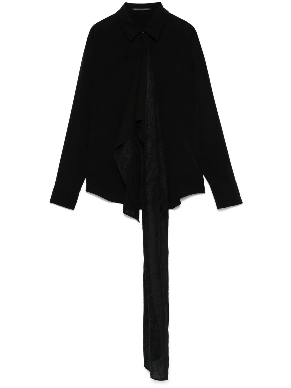 drape-panel shirt Highlights - Black - Front button fastening - Buttoned cuffs - Classic collar - Curved hem Imported Composition Cotton 100%, Nylon 68%, Triacetate 57%, Polyester 43%, Rayon 32% SIZE & FIT Model measurements Height 5 ft 10 in(1.77 m) Bust/Chest 31.1 in(79 cm) Hips 34.64 in(88 cm) Waist 24.01 in(61 cm) FittingInformation Designed for a slim fit that sits just away from the body offering a close yet comfortable fit Made from a midweight non-stretch fabric
